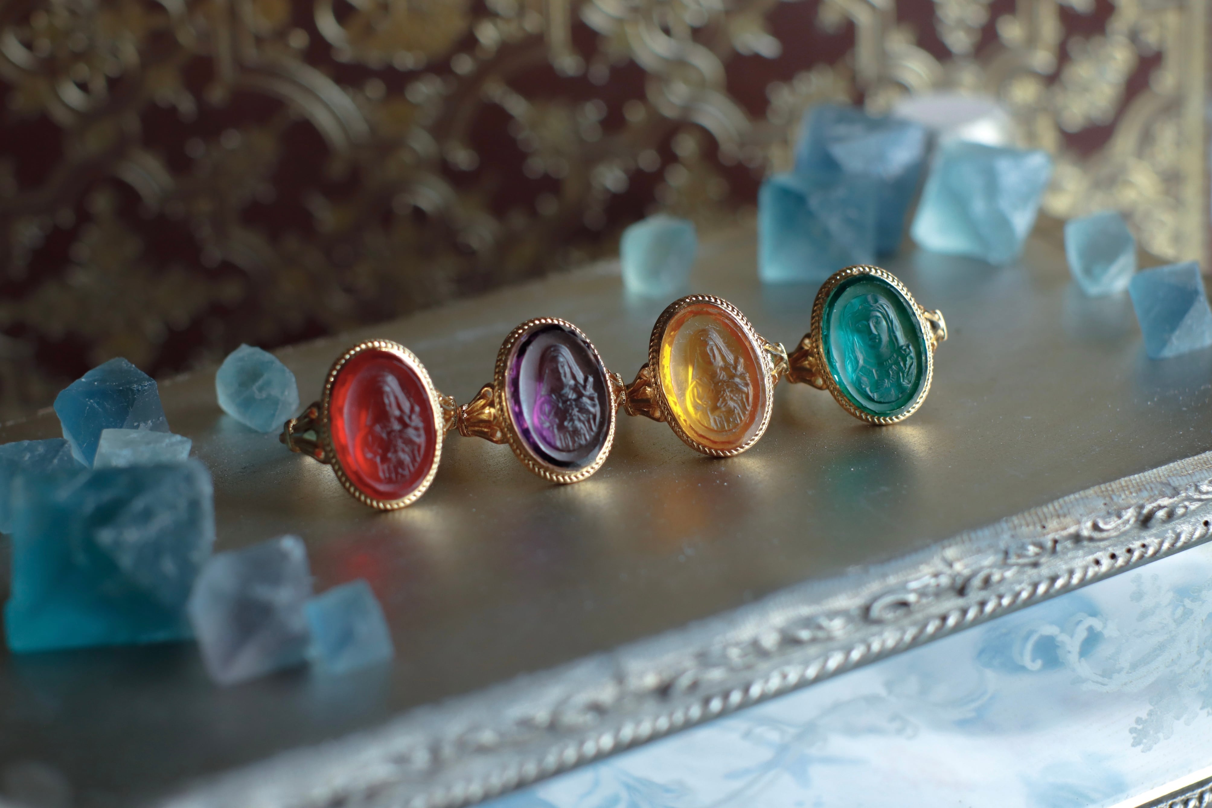 お菓子のようなすりガラスのヴィンテージインタリオリング