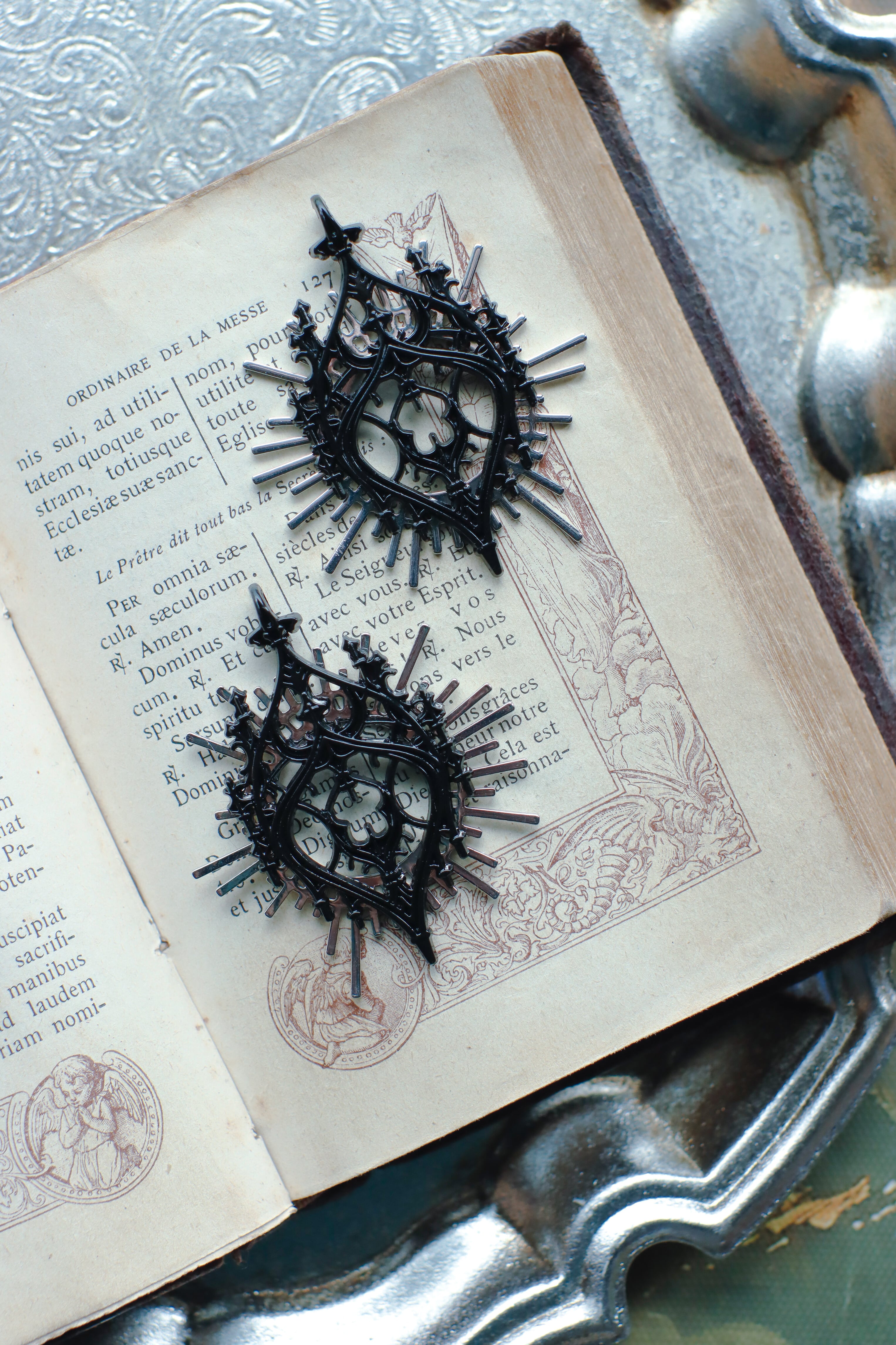 厳かな光を浴びる大聖堂の尖塔アーチの耳飾り