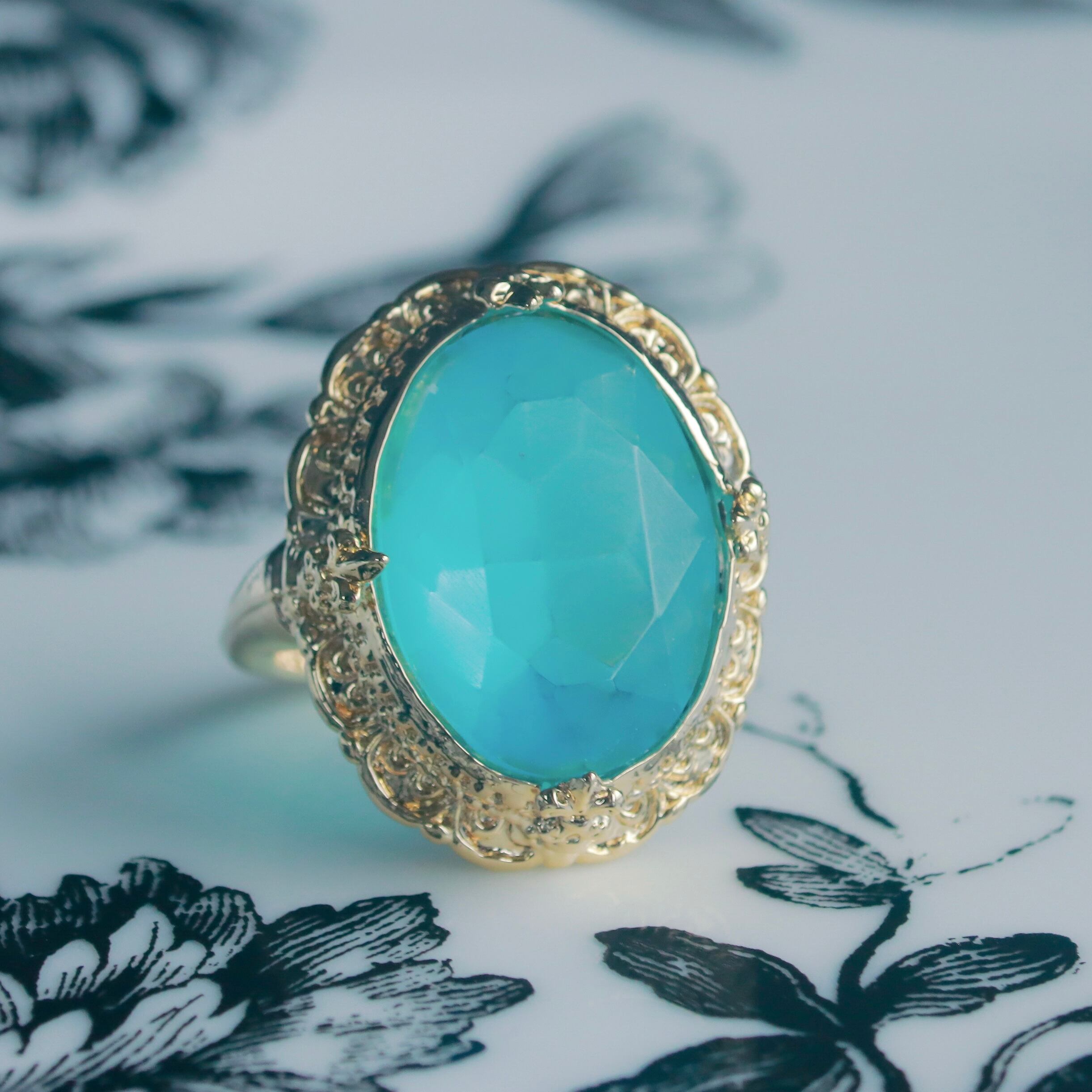 琥珀糖のようなすりガラスのストーンを指輪にしました